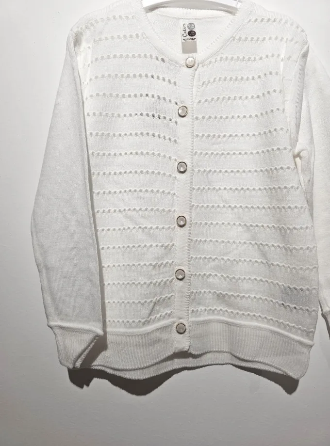 Υπέροχη άσπρη ζακετούλα πλεκτή με πολύ όμορφη και ιδιαίτερη πλέξη.