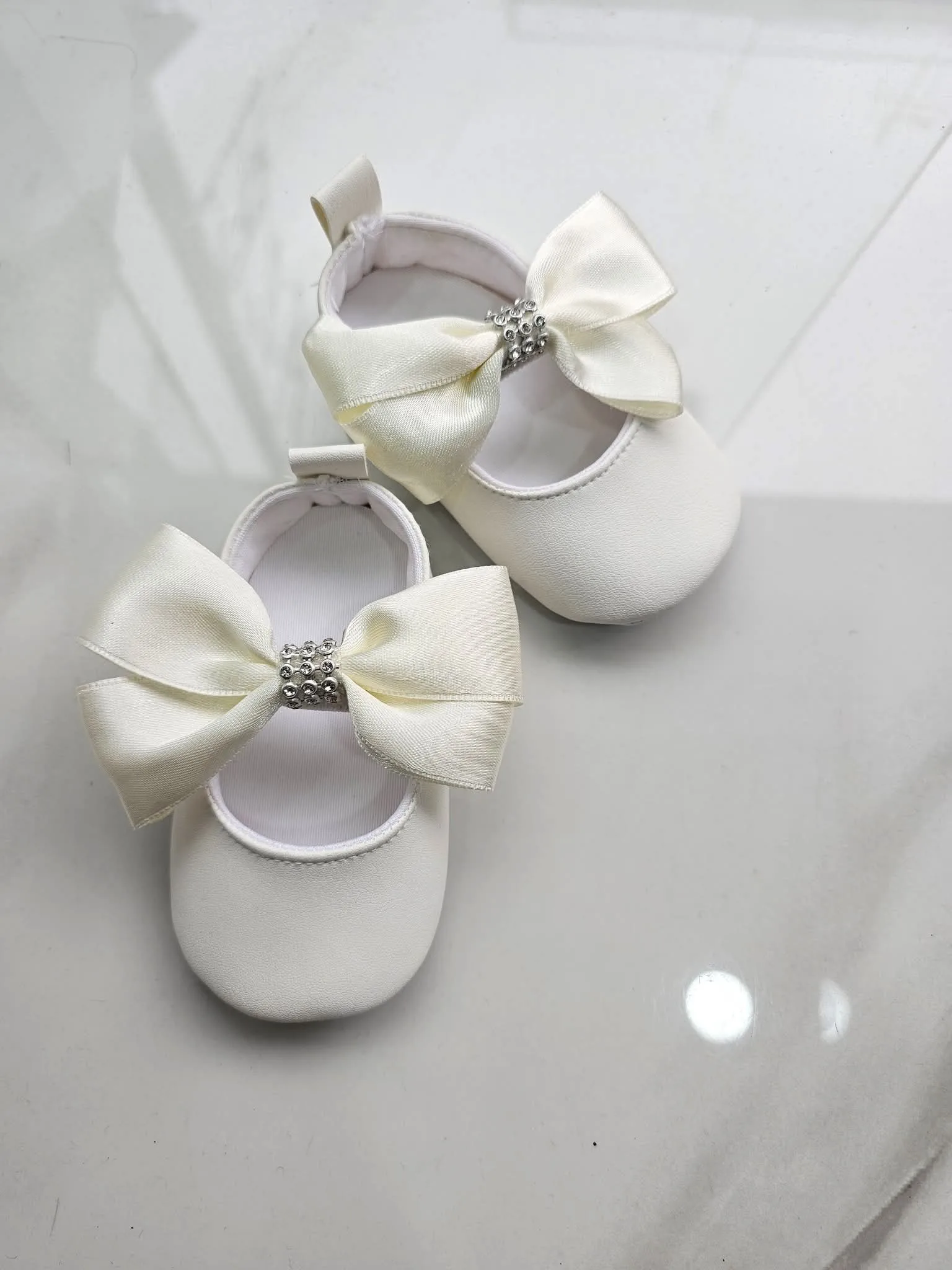 Υπέροχες μπαλαρίνες αγκαλιάς, σε εκρού – off-white χρώμα, με τεράστιο φιόγκο σατέν και ματ αίσθηση!