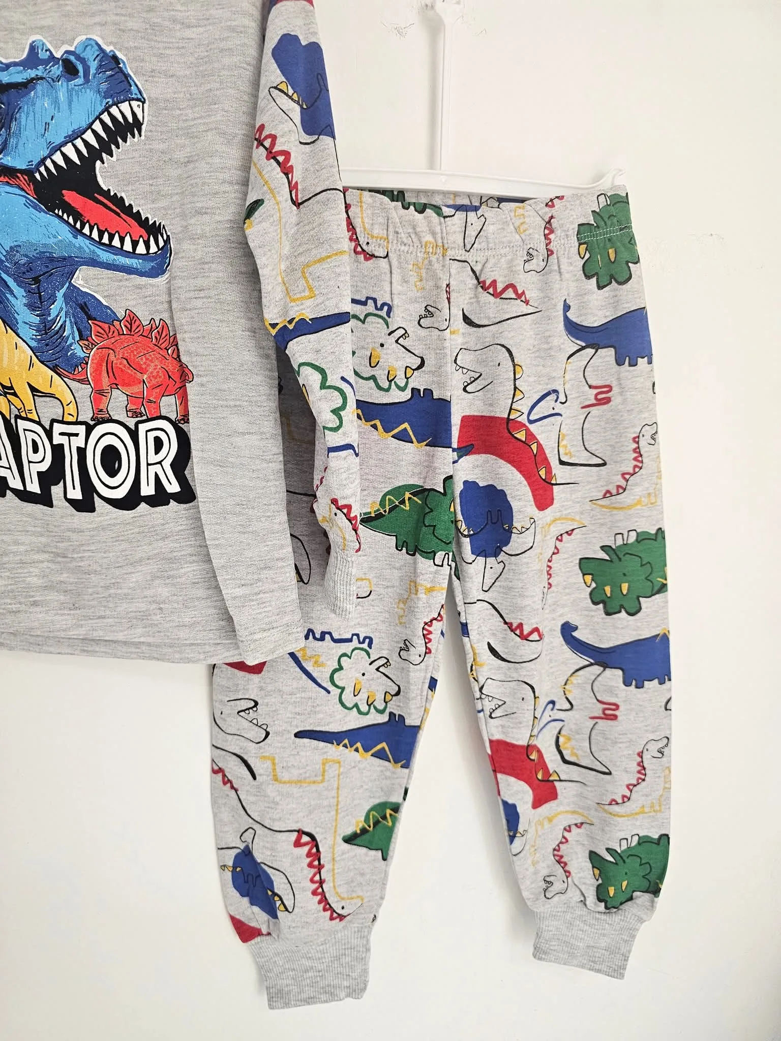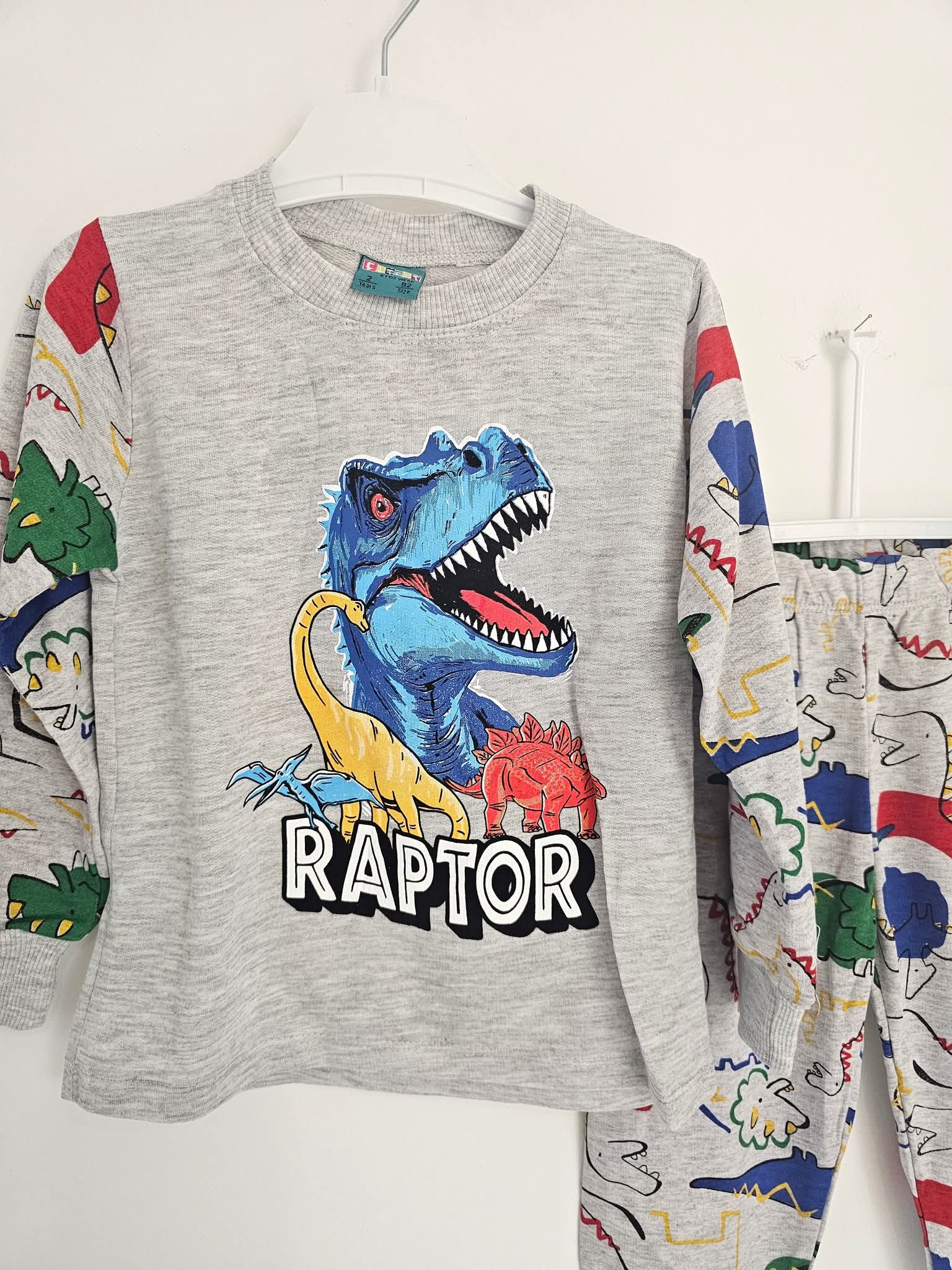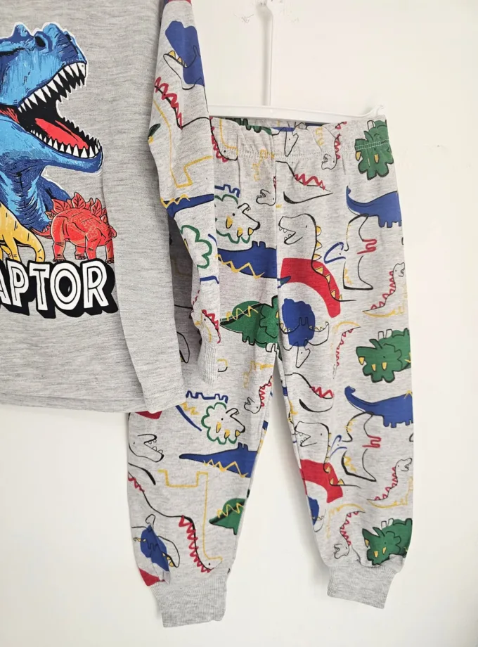 Τέλεια βαμβακερή μπιτζάμα μεσαίας εποχής, με τέλειο σχεδιάκι με δεινοσαυράκια χρωματιστά!