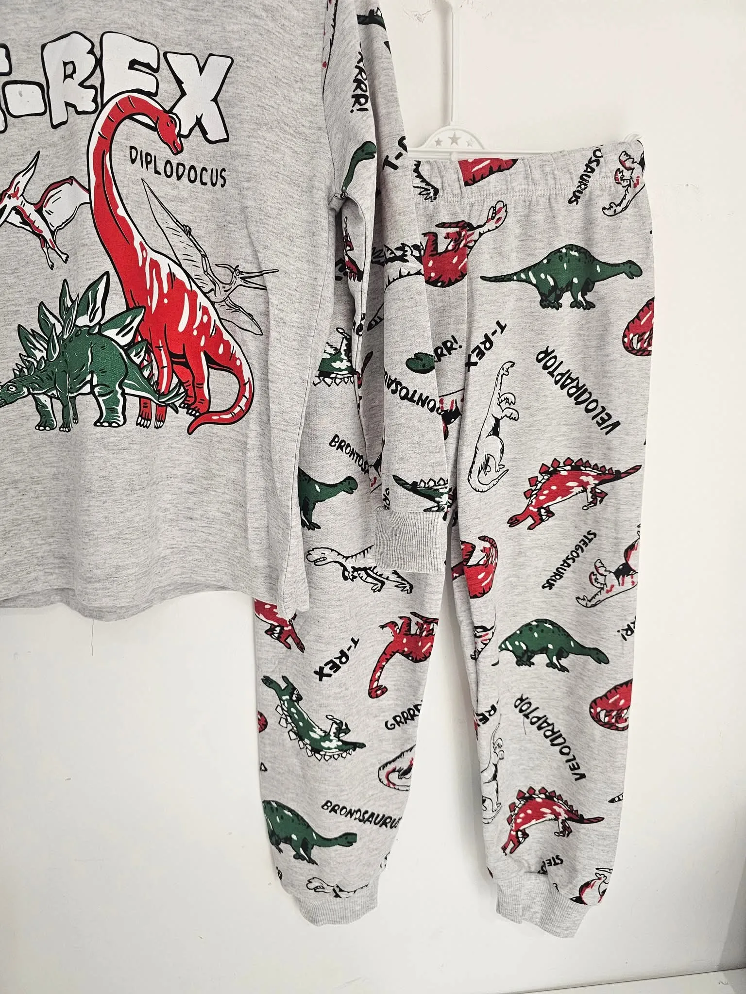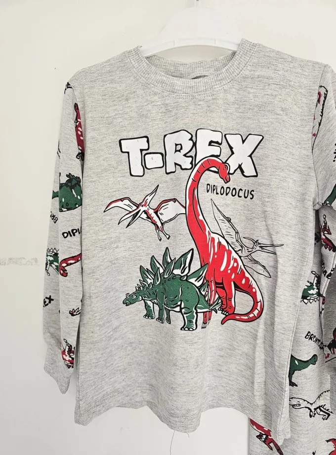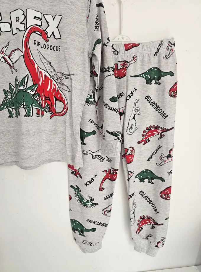 Τέλεια βαμβακερή μπιτζάμα μεσαίας εποχής, με τέλειο σχεδιάκι t-rex!