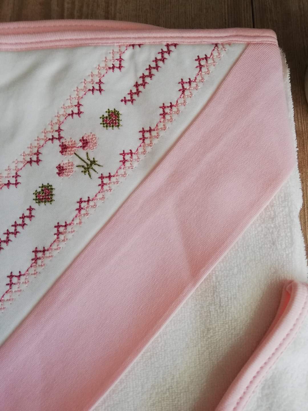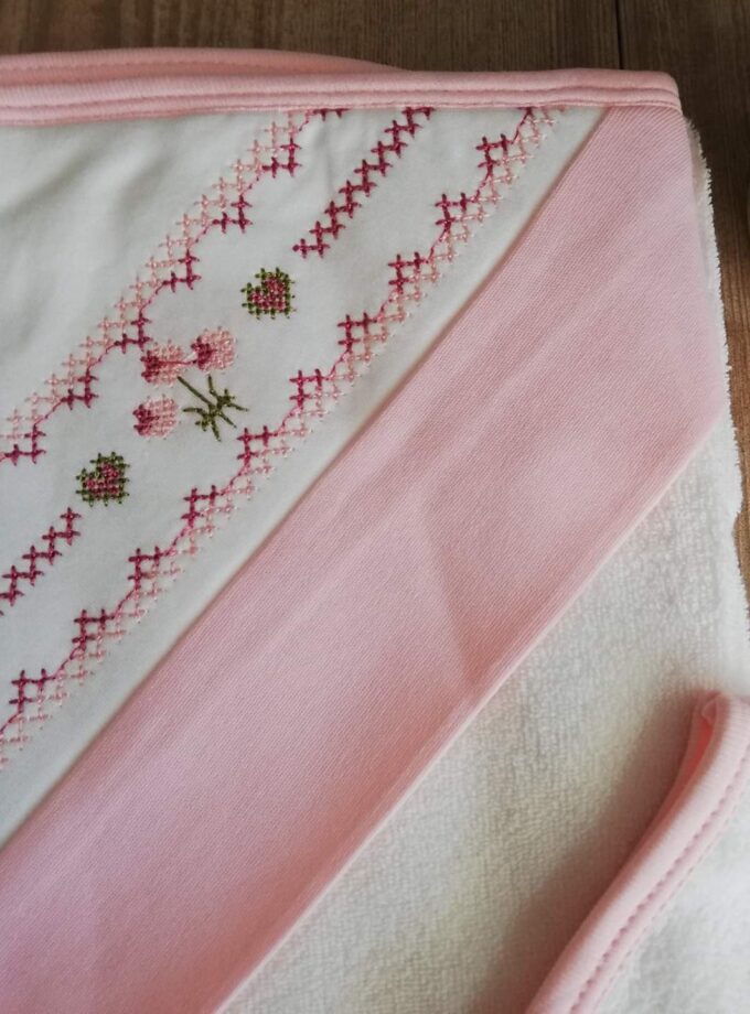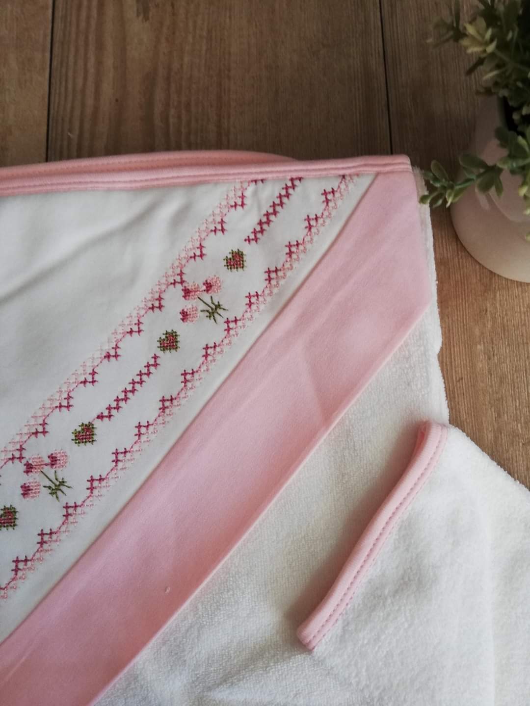 Μπουρνουζάκι-κάπα, 100% healthy, με κέντημα λουλουδάκια-καρδούλες, ΔΩΡΟ τρίφτη, πολύ απορροφητικό.