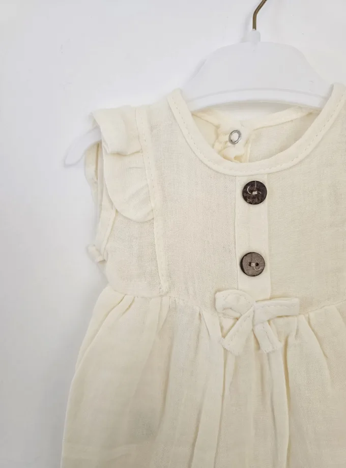 Βαμβακερή φορμούλα για την μπέμπα, σε όμορφο παστέλ χρώμα. Βαμβακερή και δροσερή, μίνιμαλ και ευκολοσυνδύαστη!