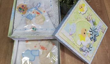 Σετ σεντόνια κούνιας, πανωσέντονο με κέντημα δύο αρκουδάκια και τελείωμα δανδέλα βαμβακερή, κοφτή και σιέλ κορδέλα. Κατωσέντονο και μαξιλάρι και πάνα πικέ ασορτί με κέντημα μεγάλο και τελείωμα φεστονάκι.