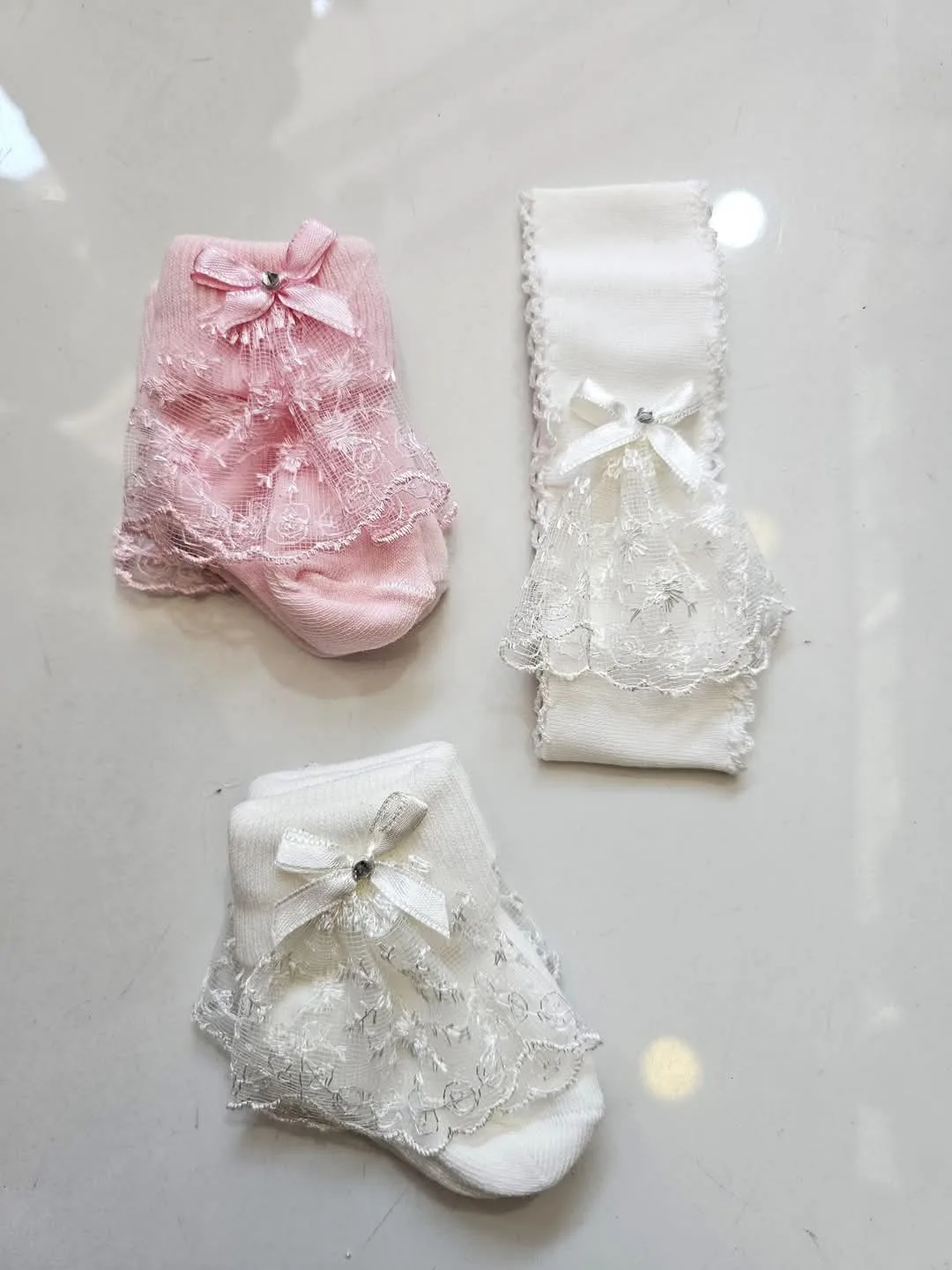 Τέλειο σετάκι για νεογέννητο μωράκι, με δύο καλτσάκια και κορδέλα με σχέδιο.