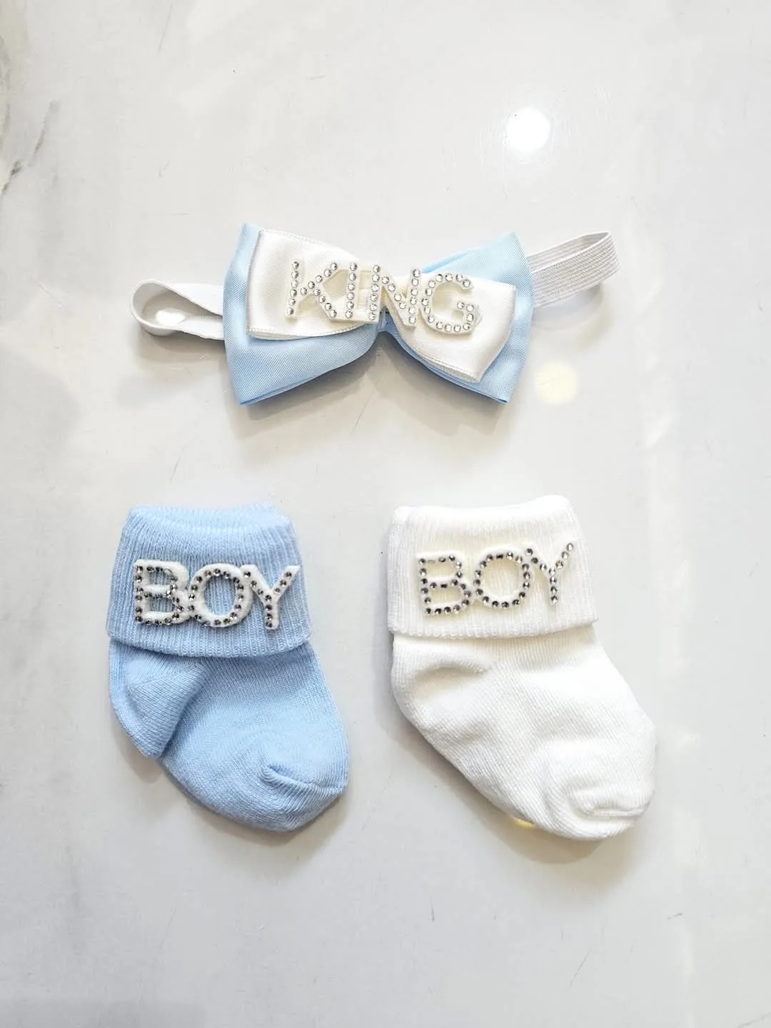 Σετ Newborn Καλτσάκια-Παπιγιόν KING BOY Σιελ Σετ Newborn Καλτσάκια-Παπιγιόν...
