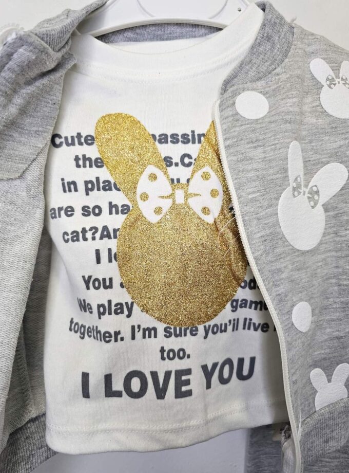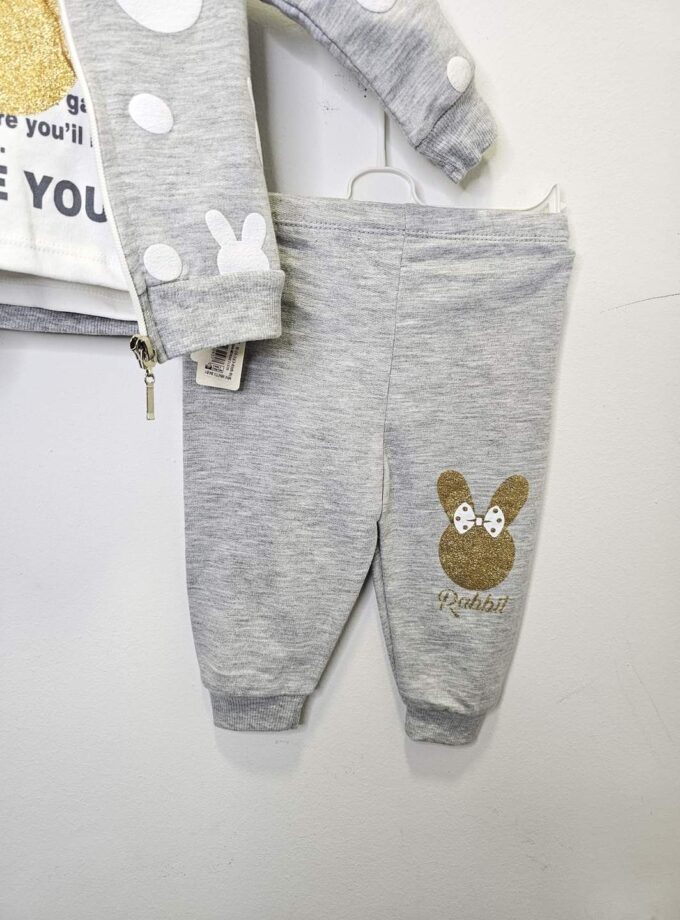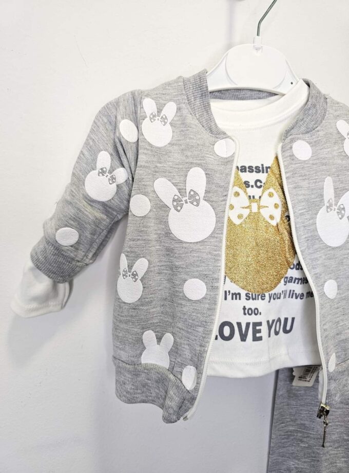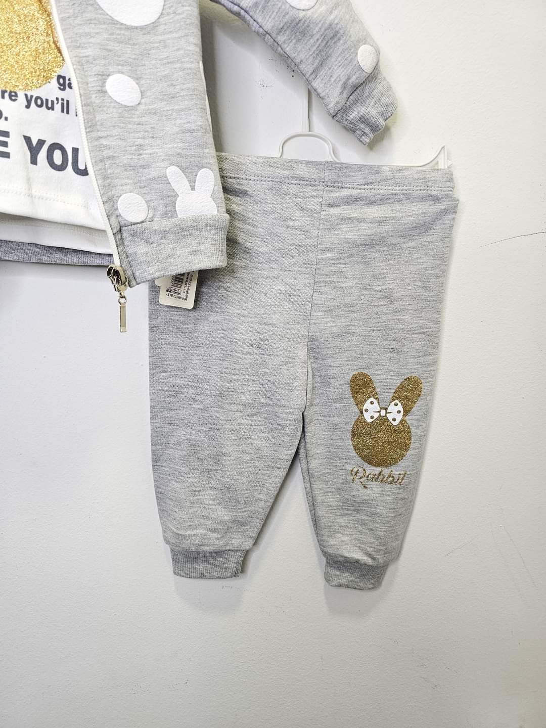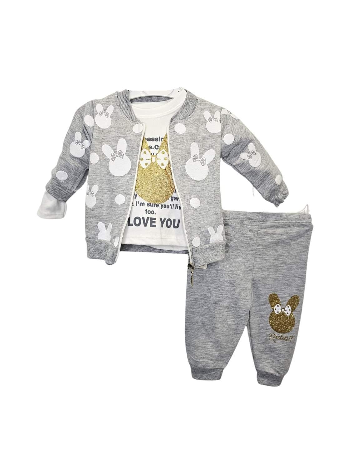 Συνολάκι Τριπλό Γκρι Κουνελάκια Bebe - Νο 6-18 μηνών Συνολάκι Τριπλό Γκρι Κουνελάκι...