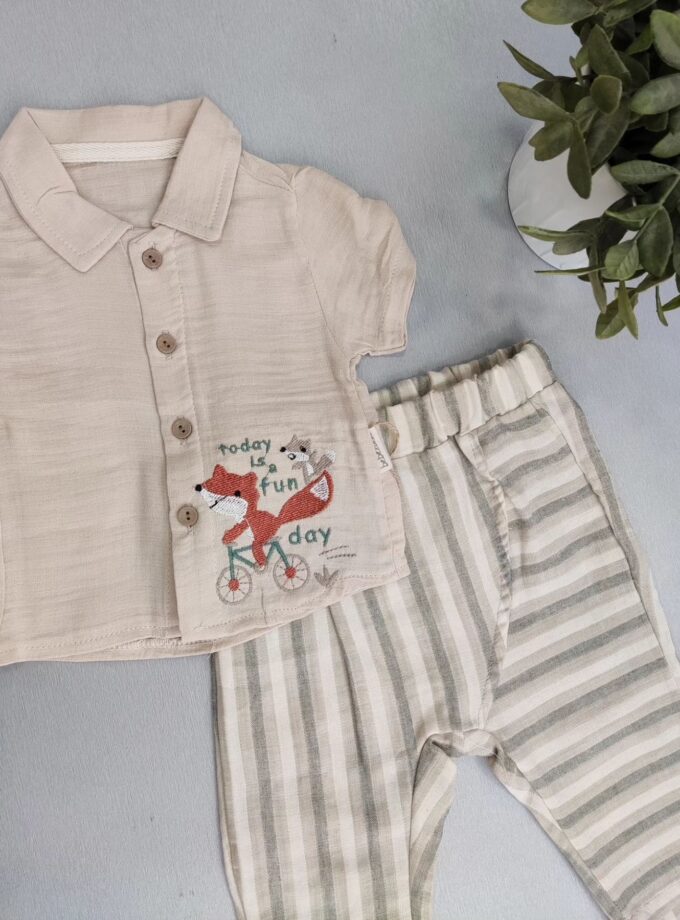 Σύνολο Αλεπού Ριγέ Μπεζ Bebe - Νο 3-18 μηνών Σύνολο Αλεπού Ριγέ Μπεζ Bebe &...