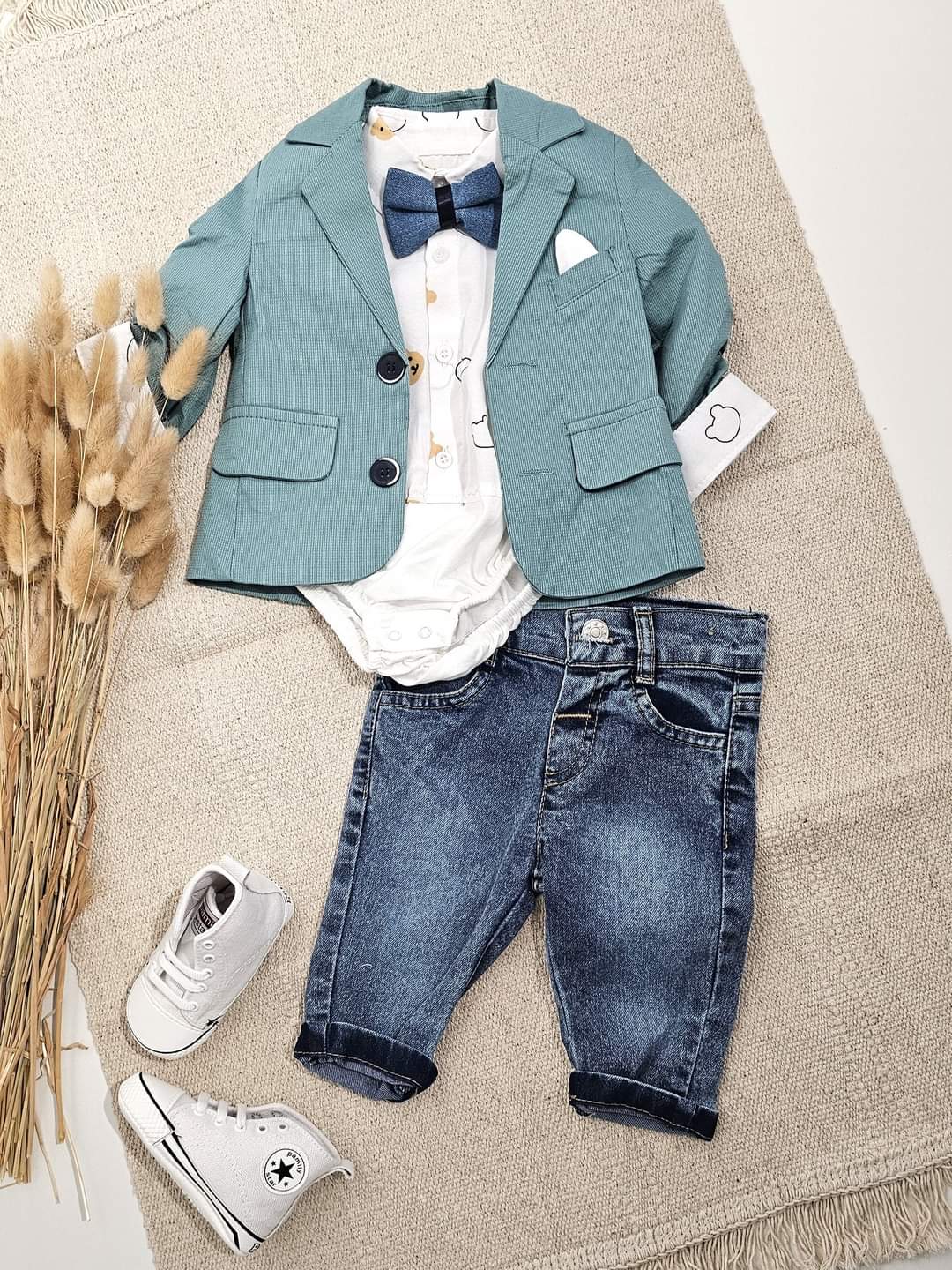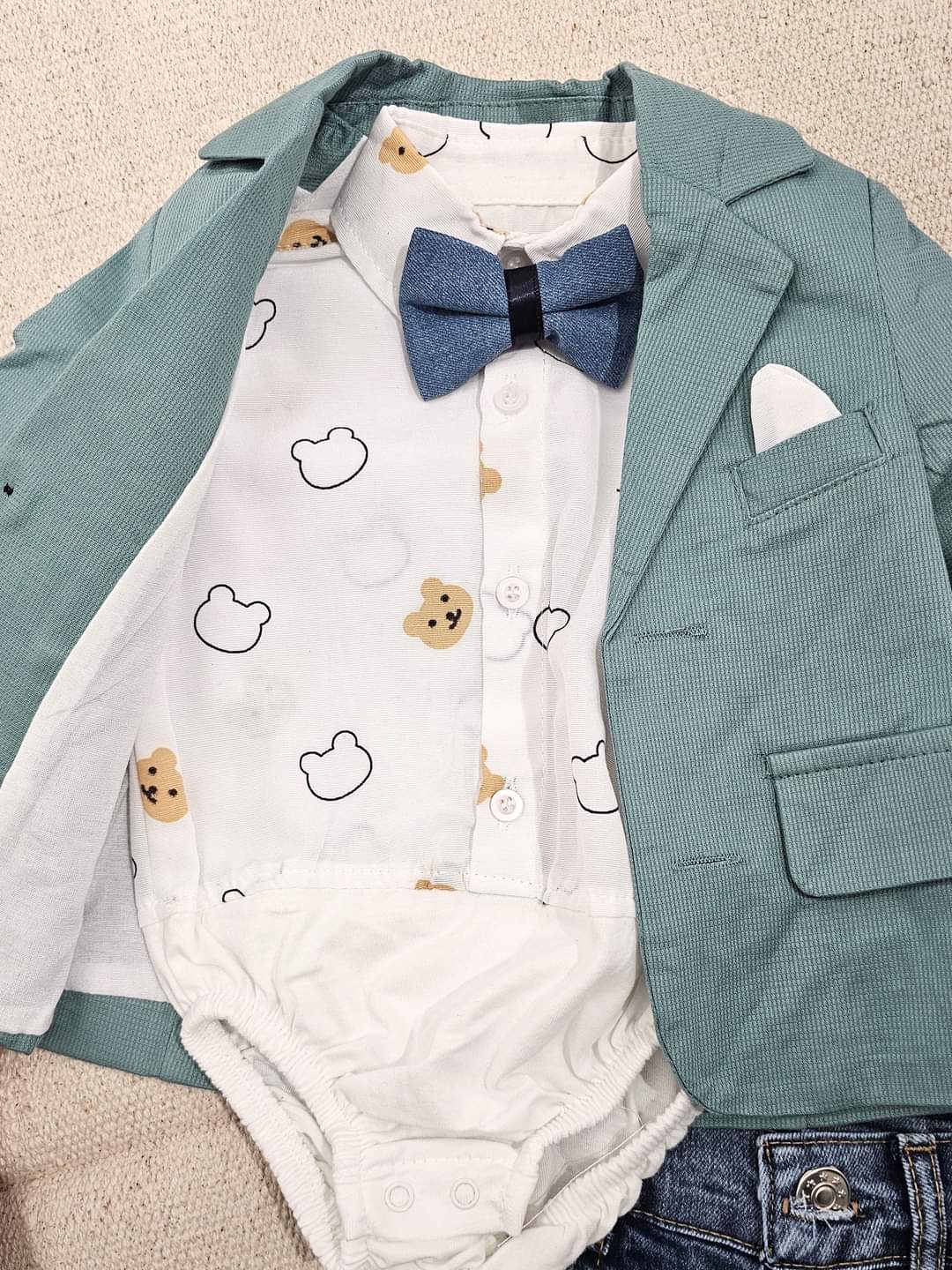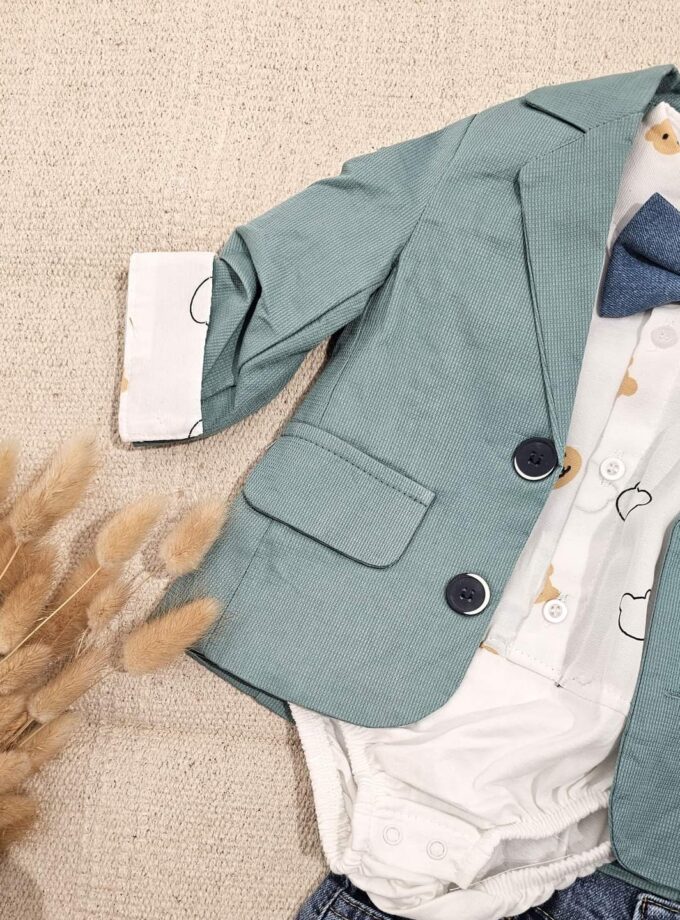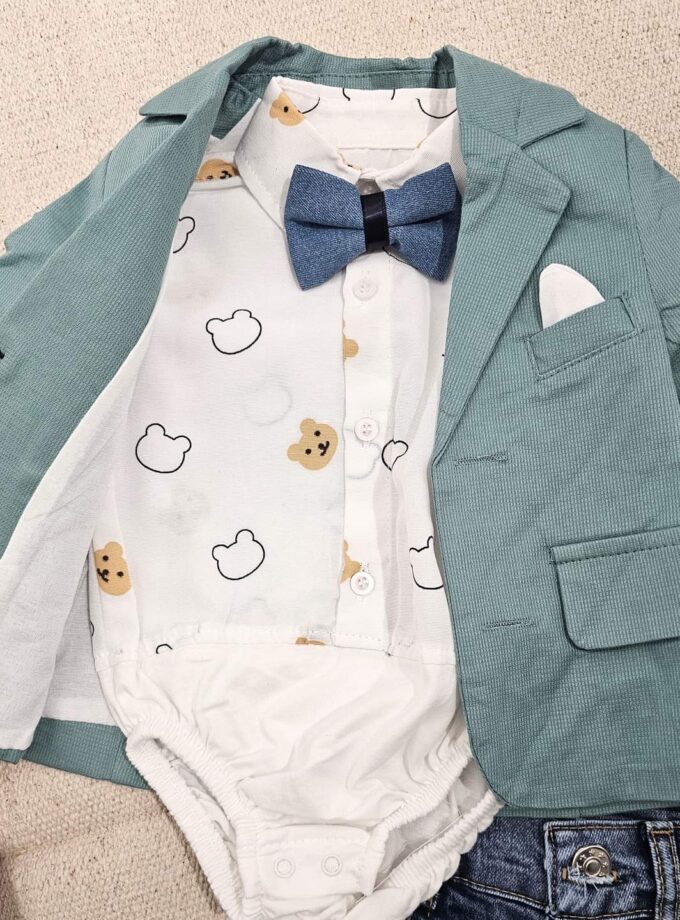 Το συγκεκριμένο προϊόν αποτελείται από το κοστουμάκι, το πουκάμισο και το τζιν. Το παπουτσάκι πωλείται ξεχωριστά.