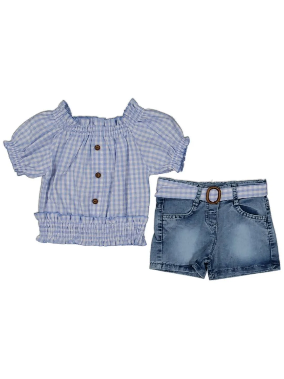 Σύνολο Πουκαμισάκι Καρό και Τζιν Σορτς Σιελ Σύνολο Πουκαμισάκι Καρό και Τζ...
