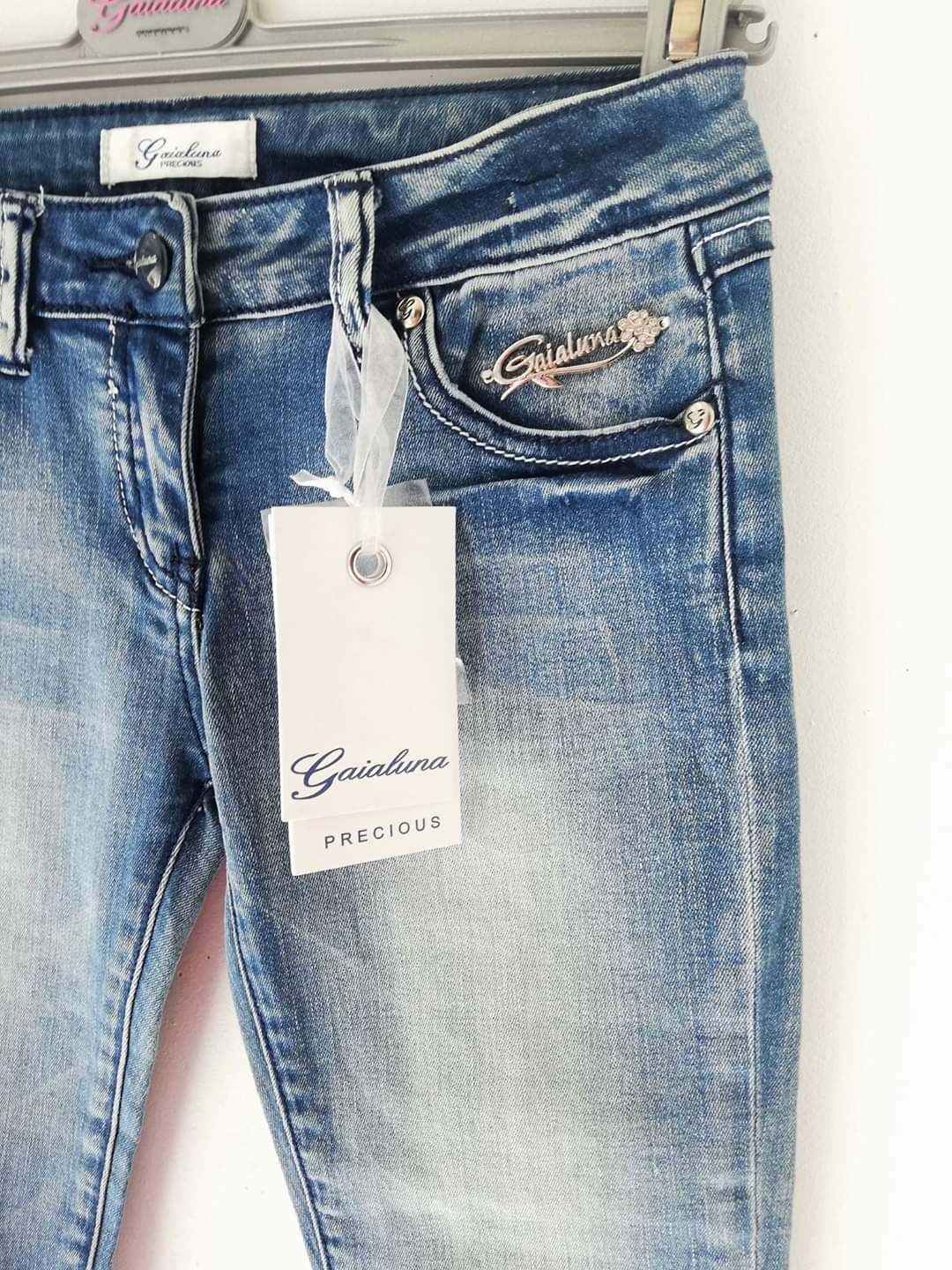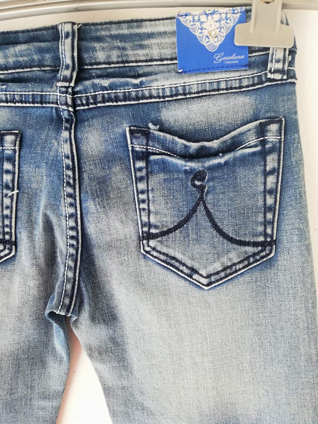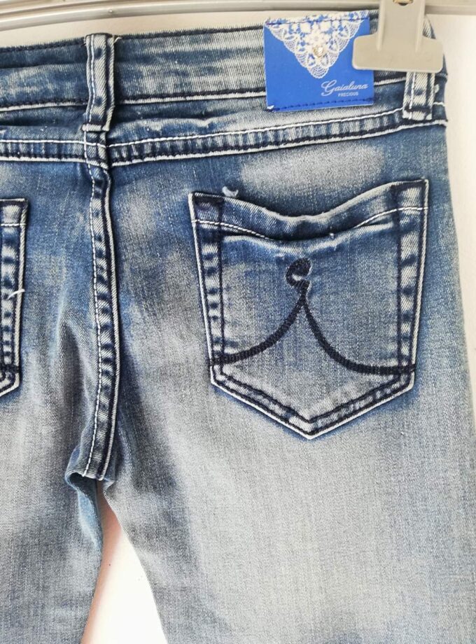 Τζιν παντελόνι, της ιταλικής εταιρίας Gaialuna, ελαστικό με τέλεια εφαρμογή και μεταλλικό σήμα της εταιρίας στην τσέπη. Slim γραμμή.