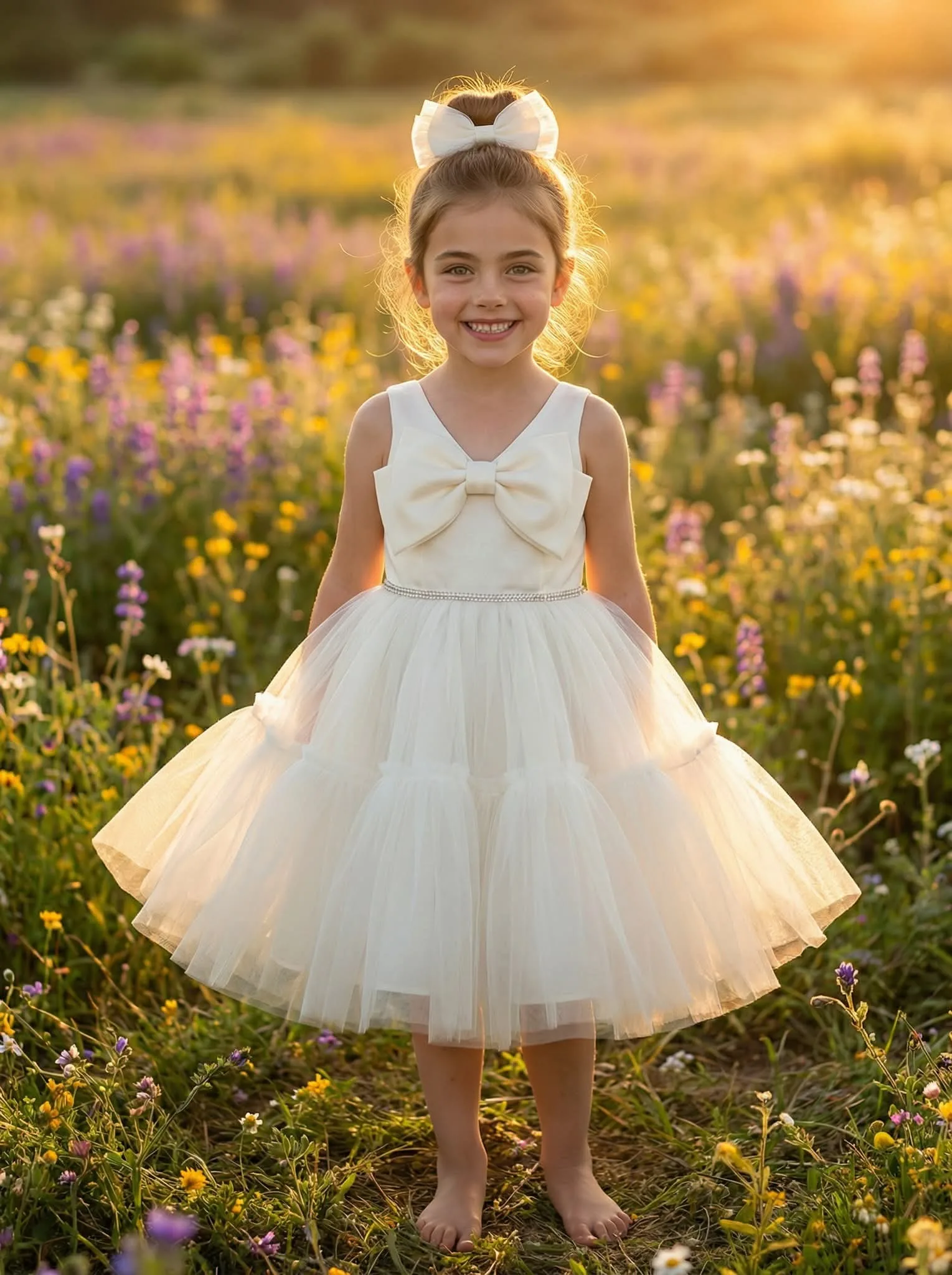 Παραμυθένιο αμπιγέ φόρεμα παιδικό σε off-white απόχρωση: